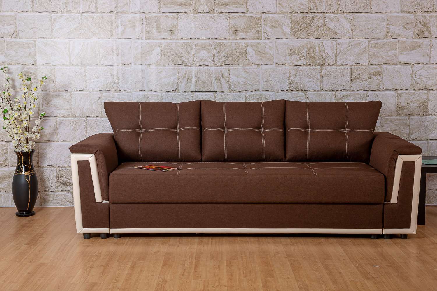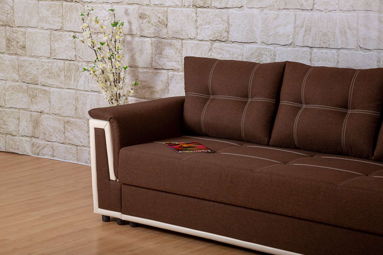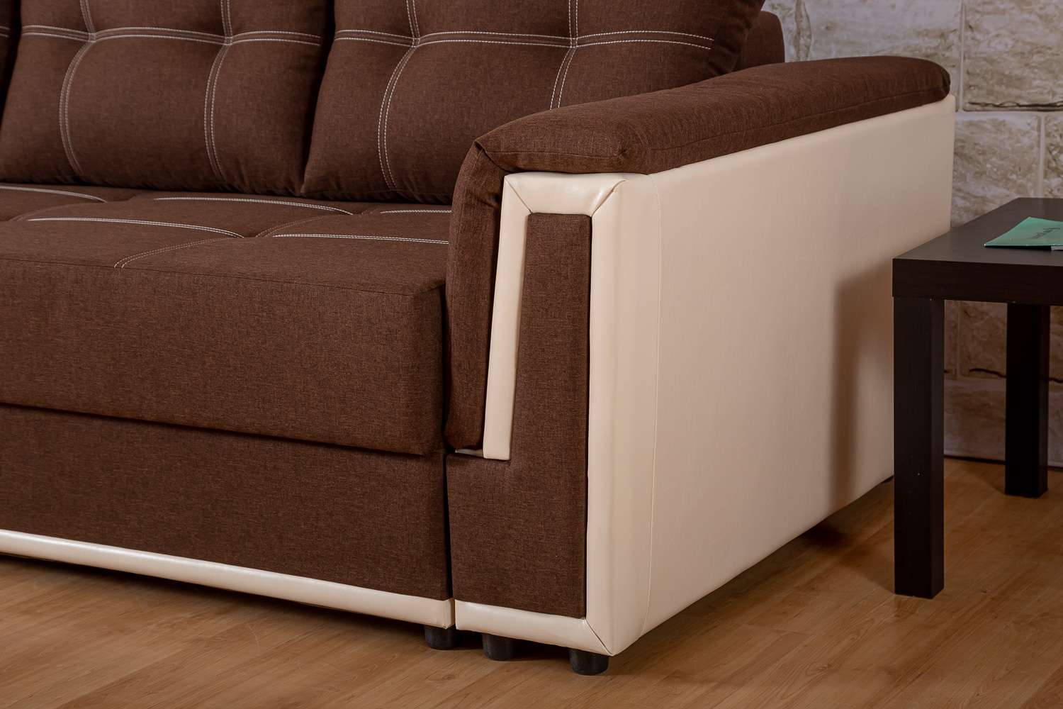 Этот диван — воплощение домашнего уюта и практичности. Его мягкие боковины приглашают вас расслабиться и погрузиться в объятия комфорта, а встроенные полки добавляют функциональности, не нарушая гармоничный дизайн.