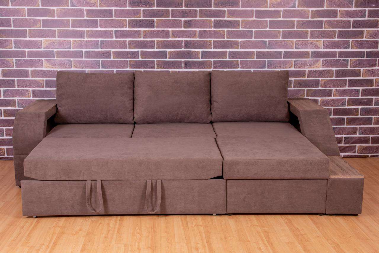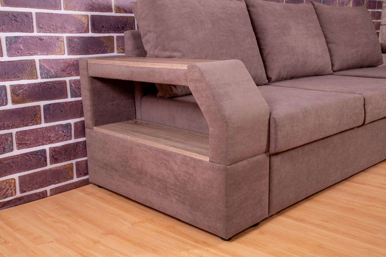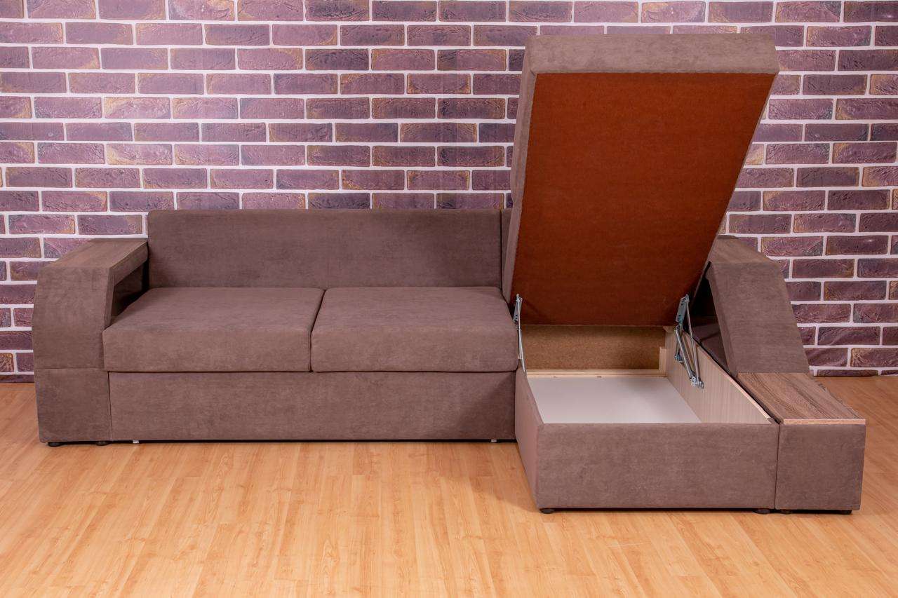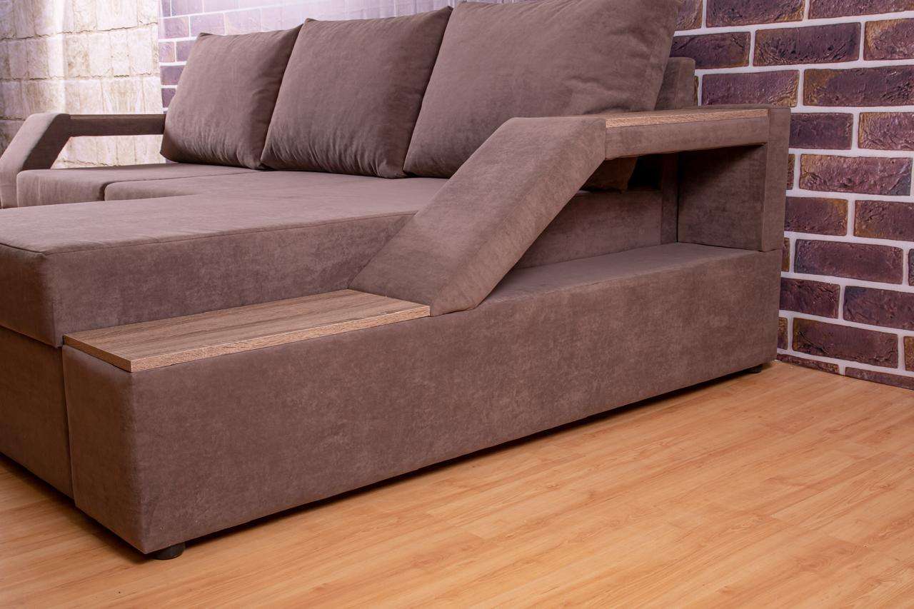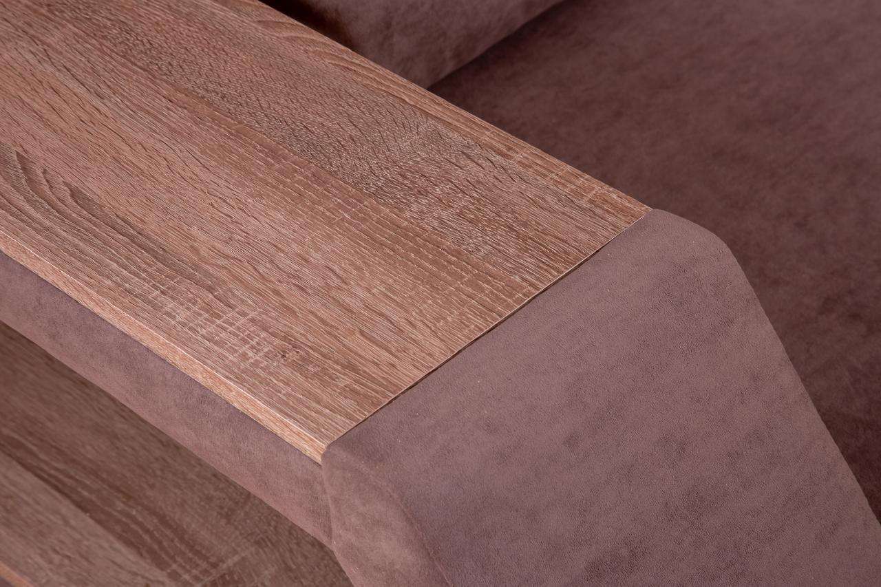 Этот угловой диван — воплощение современного дизайна и практичности. Его боковины украшены ламинированными вставками, которые придают ему изысканность и легкость, а в атаманке (основании дивана) скрывается вместительное отделение для белья.